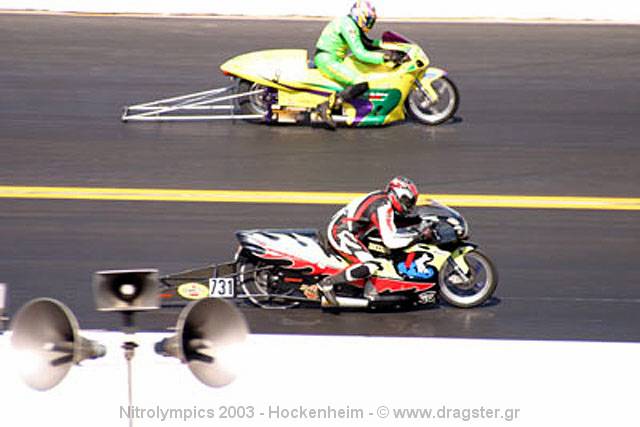 Στις 20, 21 και 22 Αυγούστου, στους Nitrolympix 2004 θα εκπροσωπήσουν την Ελλάδα οι Αντώνης Ζαφειριάδης και Θεόδωρος Μιχαηλίδης! Για τον Αντώνη Ζαφειριάδη θα είναι η δεύτερη συμμετοχή του στο Hockenheim. Και φέτος θα αγωνιστεί στην κατηγορία Pro Stock Bike. Φέτος στοχεύει ψηλότερα και γι' αυτό έχει εφοδιάσει το Suzuki με μοτέρ 1500cc, μοτέρ που έχει κάνει χρόνο 7,3! Παρακάτω μπορείτε να δείτε τους αντιπάλους του