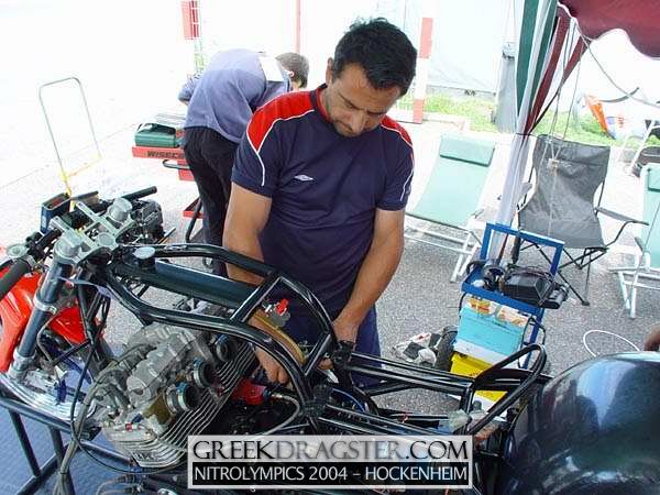 Μετά τον τεχνικό έλεγχο της Πέμπτης αλλάξαμε τον κινητήρα τον οποίο είχα αγοράσει προ διμήνου από την σουηδική MOTOSPEED έναντι 15.000 ευρώ. Πρόκειται για ένα 8βάλβιδο μοτέρ με 300 άλογα που αγοράστηκε ειδικά γι' αυτόν τον αγώνα. Η τοποθέτηση και το σετάρισμα του μοτέρ μας πήρε όλη την Πέμπτη ενώ την Παρασκευή ενώ μπορούσαμε να κάνουμε ένα 7.8 ή 7.9 και να τελειώνουμε νωρίς με το θέμα πρόκριση προτιμήσαμε να μη ζορίσουμε το ολοκαίνουργιο μοτέρ κάνοντας χρόνους πάνω από 8'' και φυλάγοντας δυνάμεις για το Σάββατο.
